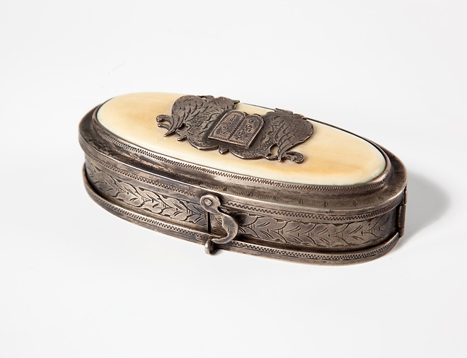 Складная ханукия. Россия. 1896 г. Серебро, слоновая кость. 10,5 х 4,5 х 3.