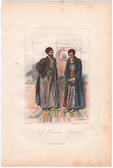Auguste Raffet. ‘Juifs Karaimes (Odessa)’. (Karaite Jews (Odessa). Lithograph by Riffault. Paris: published by Ernest Bourdin. 1838. Lithograph on paper. 26.8 х 17.2. French. Plate from the book by Anatole de Démidoff (Anatoly Demidov), Prince of San Donato. Album du Voyage dans la Russie méridionale et la Crimée, par la Hongrie, la Valachie et la Moldavie.